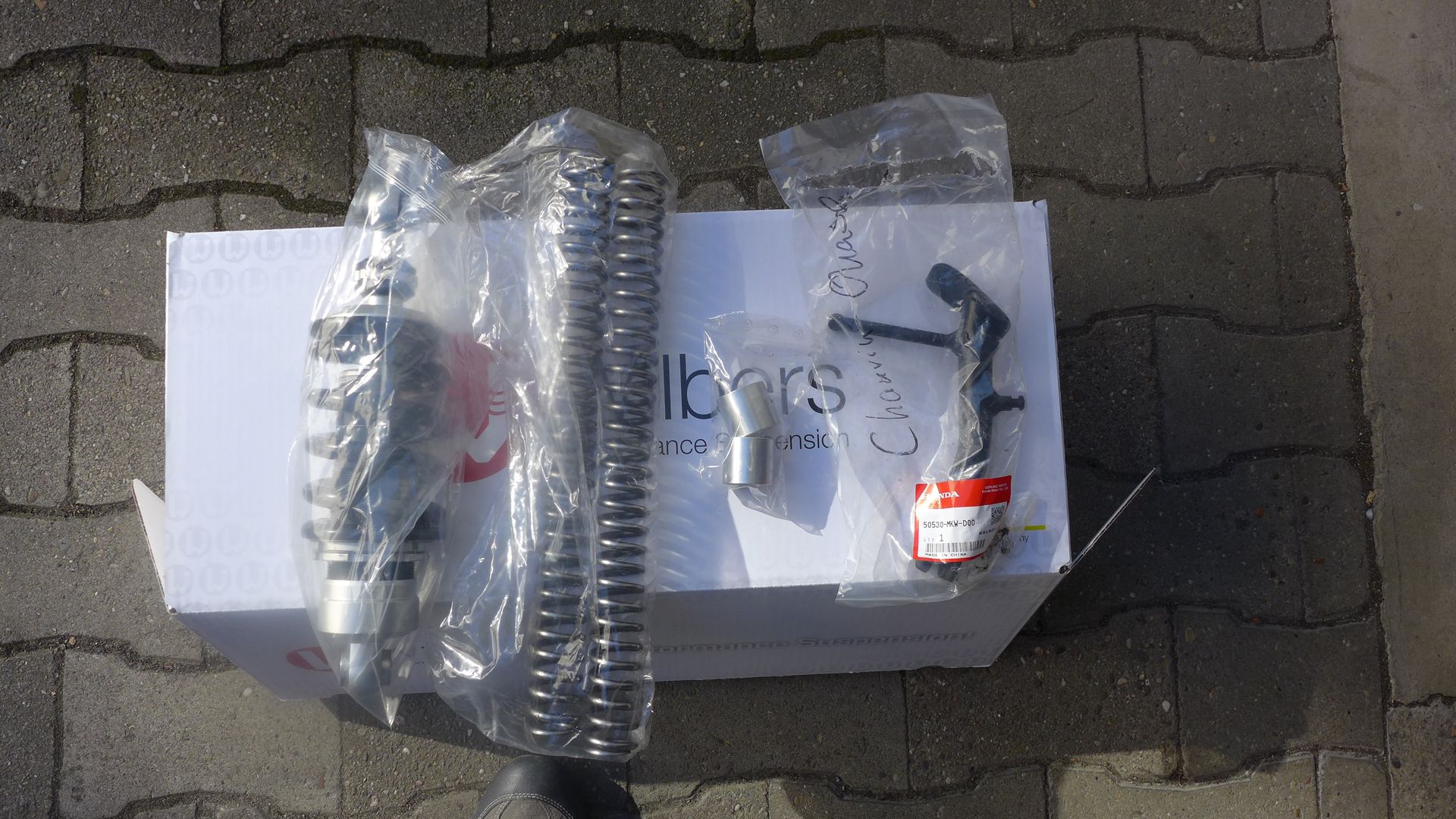 Da ich mein NC750X verkauft habe, biete ich ein kaum benutztes Wilbers-Fahrwerk mit 30 mm Tieferlegung an.