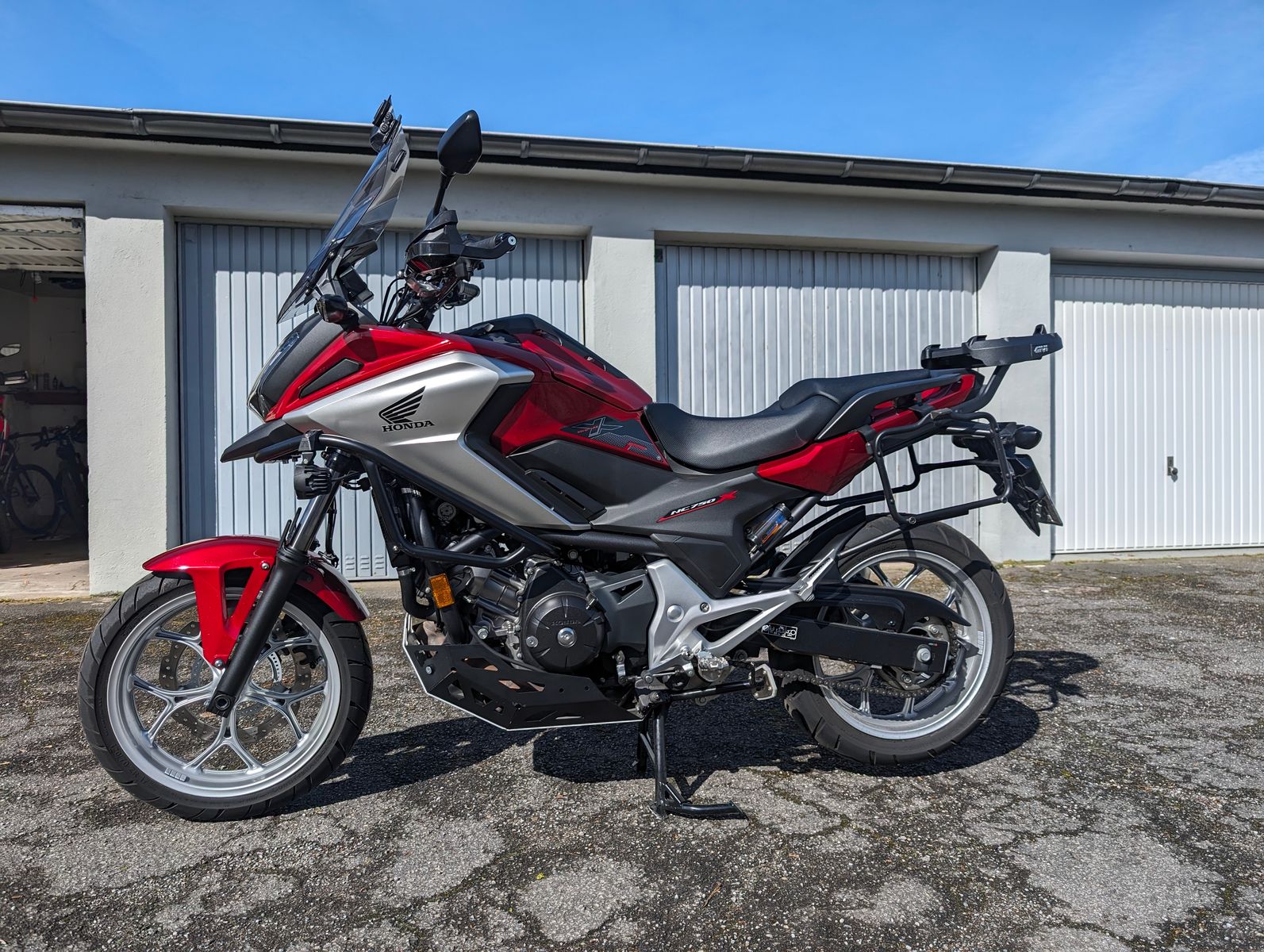 Zum Verkauf steht eine gepflegte Honda NC750X RC90 von 2017 mit manuellem Getriebe.