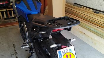 Anfänglich haben mich einige Kommentare abgeschreckt wonach man die Verkleidung wegschneiden muss damit die Halterungen passen, bei mir war das kein Problem. Ich habe aber an zwei Stellen wo der Topcase Halter am Plastik der Verkleidung ankommt vorsichtshalber Klebestreifen zum Schutz draufgeklebt.