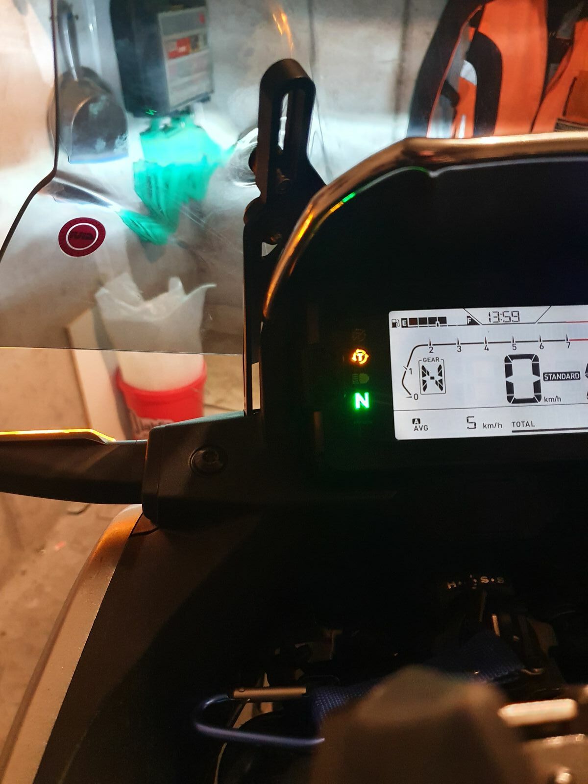 Als mir ist da noch etwas total unsinniges eingefallen. Ich habe mir ein Chromprofil über die Handprotektoren gemacht, weil ich es einfach toll finde. Blöder Weise habe ich noch Profilkeder übrig gehabt und Schwups war er auch noch überm Display. Als das war ja absolut unsinnig und lässt sich auch streiten darüber. Aber im nachhinein habe ich festgestellt, das der Blinker in dem Chrom Keder spiegelt und das Ende der Geschichte ist: