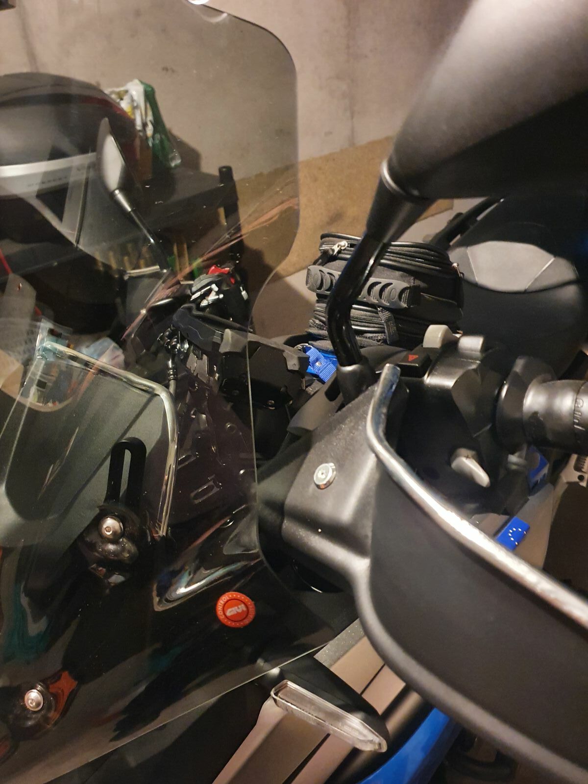 Wie sind den die Handschützer befestigt worden ? An den Lenkergewichten und dem Spiegelgewinde ? Ich habe den Metallbügel der Protektoren auch etwas versetzen müssen wegen der hohen Scheibe. Habe aber eh noch gekröpfte Lenker Erhöhung gebraucht, damit ich meine Navihalterung an der Lenkerstange befestigen konnte. Was mich auch noch interessieren würde, wie knapp war der Platz zur Handbremse
