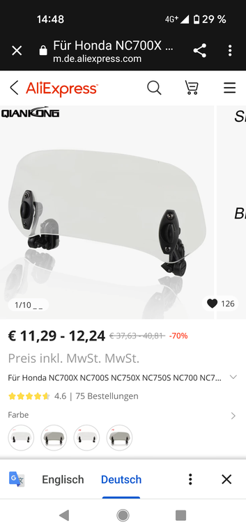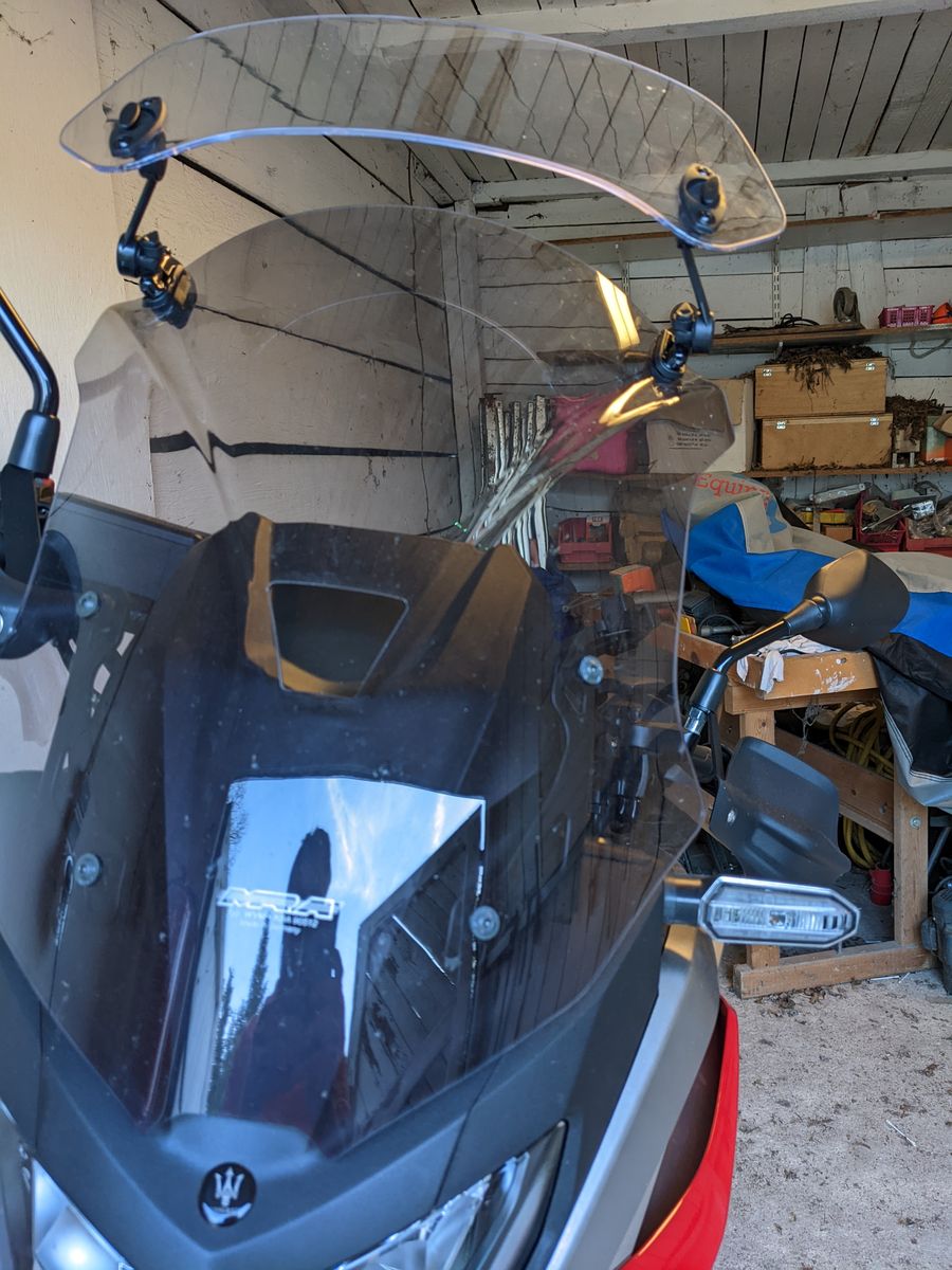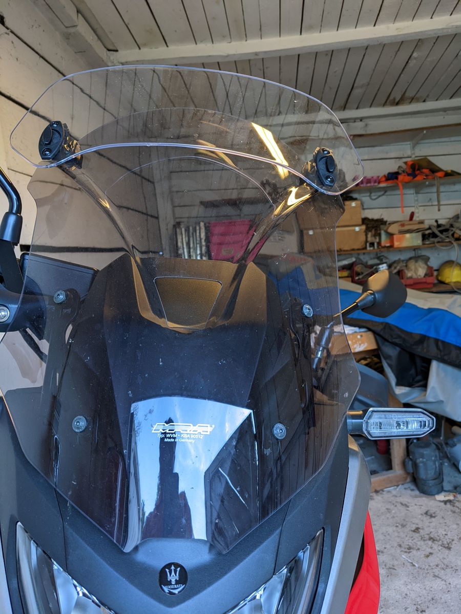 Alles anzeigenIch habe derzeit die Scheibe mit Aufsatz von MRA dran und bin damit überhaupt nicht zufrieden. Die Scheibe ist dermaßen zum Fahrer gebogen und der Spoiler ist kaum einstellbar, dass heißt, in der weiteste oben nach vorne gestellten Stellung verlängert er eigentlich nur das gerade Stück von unten der Hauptscheibe. Nun bin ich am überlegen, ob ich mir die von Puig mit dem Spoiler bestelle, leider gibt es die bei Tante L... nur Rauchgrau. Gibt es die irgendwo in Transparent zu bekommen? Hat schon jemand Erfahrungen mit dieser Zusammenstellung gemacht?