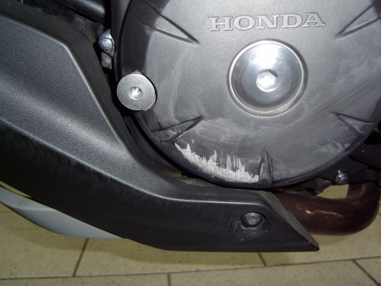 Motorseitendeckel links, unten leicht verkratzt, ohne Zubehör wie Dichtung u. Schrauben, aber voll funktionstauglich. Deckel wurde aus optischen Gründen bei letzter Inspektion (05.2014) ausgetauscht. Das Originalersatzteil (Art.Nr. 04101-MGS-D20) kostet ca.250 Euro. Der Deckel war am Motor meiner NC 700 S (Schaltgetriebe), Bj. 04.2012 und hatte einen Rutschkontakt mit der Fahrbahn am 01.04.2013.