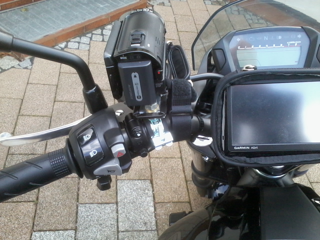. Daher habe ich mal meine normale SonyHandycam HDR-CX105E mittels einer Klapp-Rohrschelle improvisatorisch angebaut und getestet. Funktioniert bestens, gute Aufnahmequalität und wenige Wackler