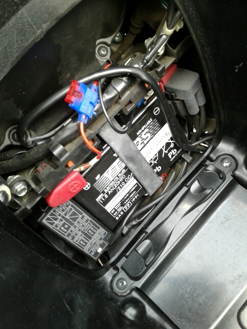 Beim Ausbau hing jedoch ein leerer Kabelschuh allein auf den MinusPool und das blanke Leitungsende (schwarz), von der Bordsteckdose, hatte sich neben der Batterie verkrochen. Auf meine Frage, ob da durch die Entladung erfolgt sei, beantwortete er mit NEIN.