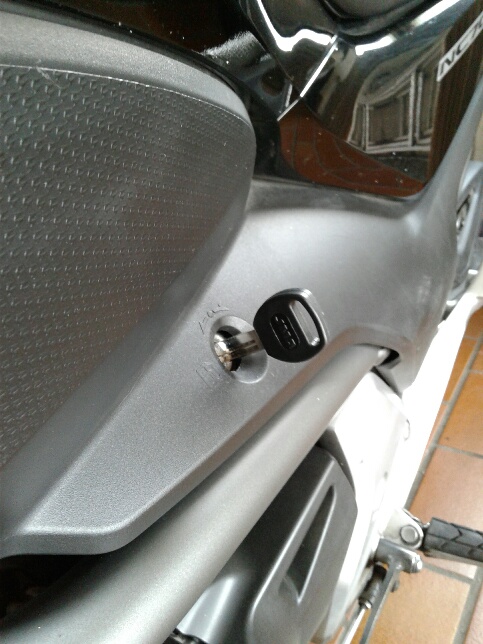 ) für rd. 10 € soll es bequemer machen. Eingesteckt im Schloß für Gepäckbox/Tankzugang läßt er die