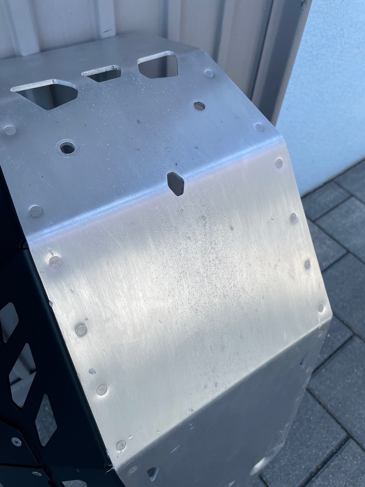 Die RH09 setzt sehr früh an den Fußrasten auf und sogar am Anlasserschutz auf der linken Seite. Da erschreckt man gern mal. Meistens ist mir das in einer Kurve mit einer kleinen Bodenwelle passiert.