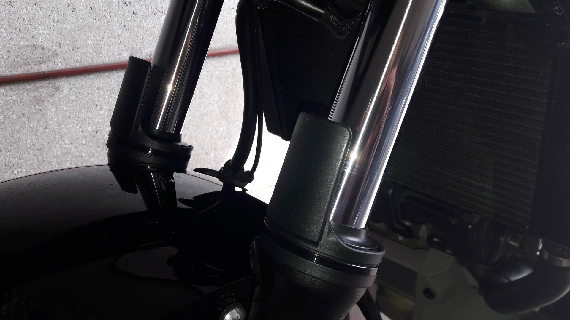 Als erstes habe ich an die Tauchrohre Gabelprotektoren angebaut.