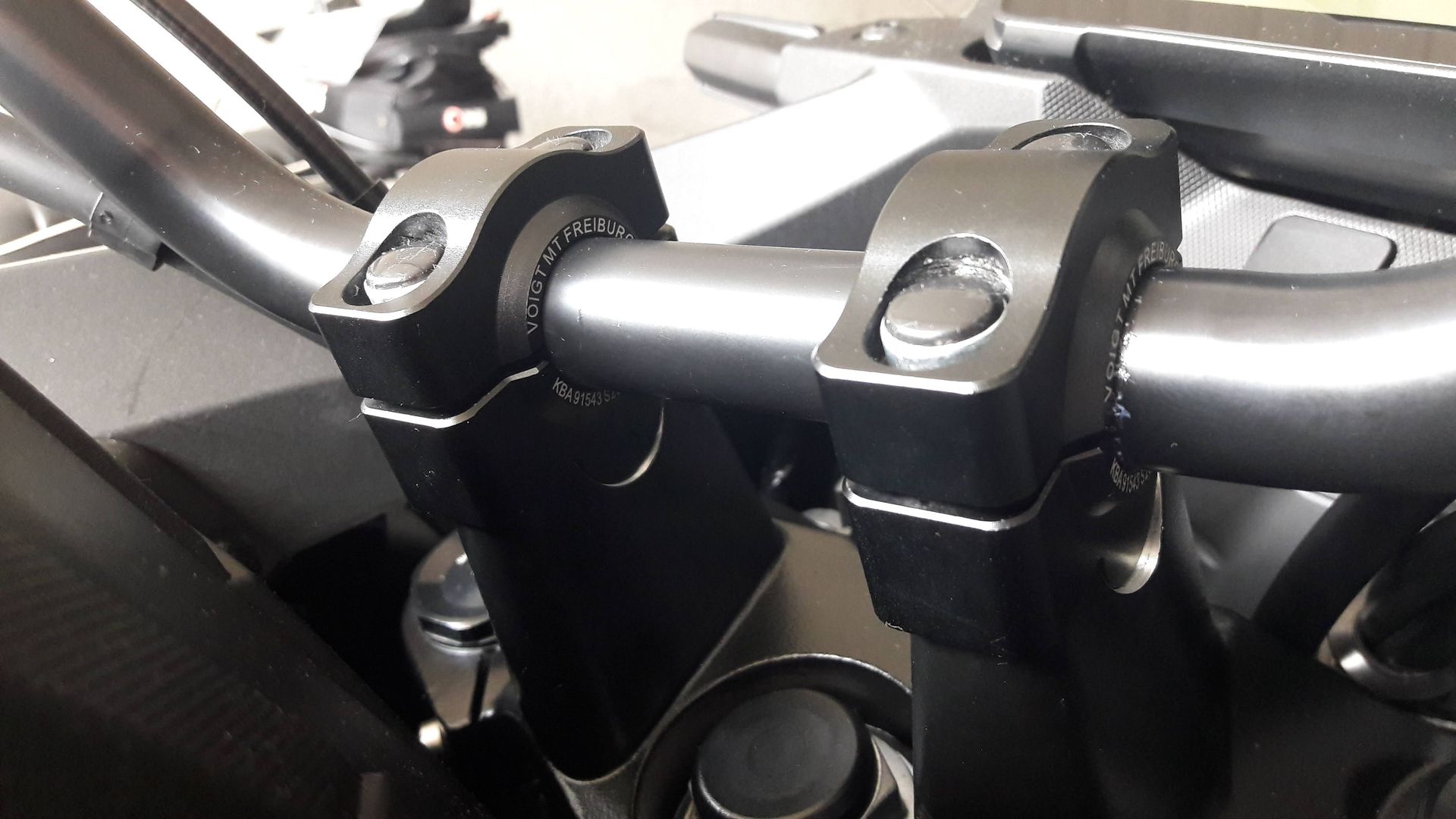 Die Lenkererhöhung um 20 mm ist von Voigt. Mal schauen wie es sich damit fährt, sie ist ja schnell auch wieder ausgebaut. Die Kabel und Züge sind lang genug, die haben die Lenkererhöhung gar nicht bemerkt.