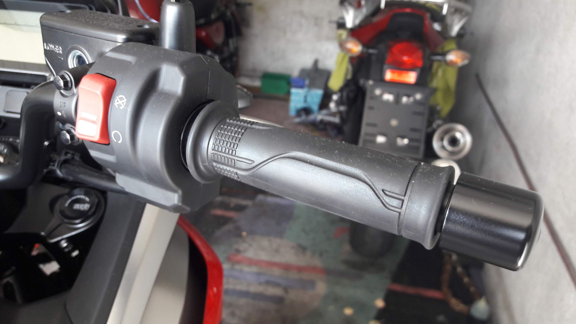 Da die Heizgriffe von Honda zur Zeit nicht lieferbar waren und auch sehr teuer sind habe ich mir welche von Daytona gekauft. Es sind die einfachen mit dem zweistufigen Schalter. Ich werde sie aber mit einem Regler betreiben, darüber berichte ich später.