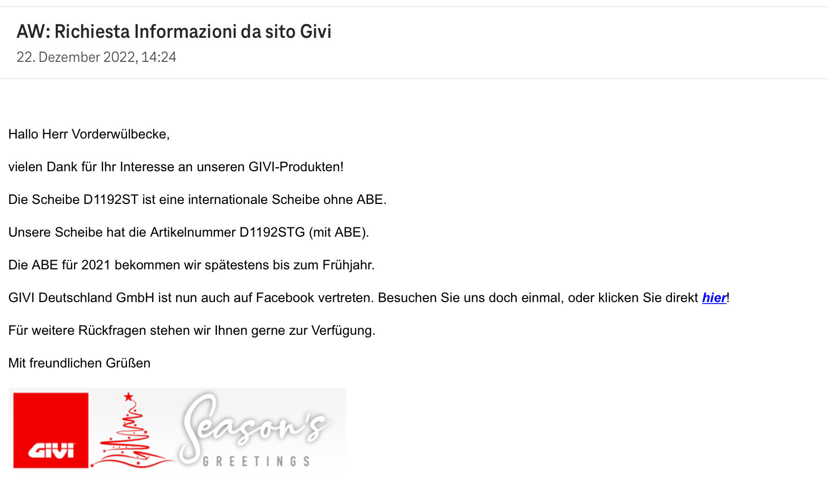 Ich habe Givi mal angeschrieben und diese Antwort erhalten, aber unter der Bezeichnung D1192 STG kann man leider nichts finden. Bleibt abzuwarten ob da sich wirklich was tut im Frühjahr.
