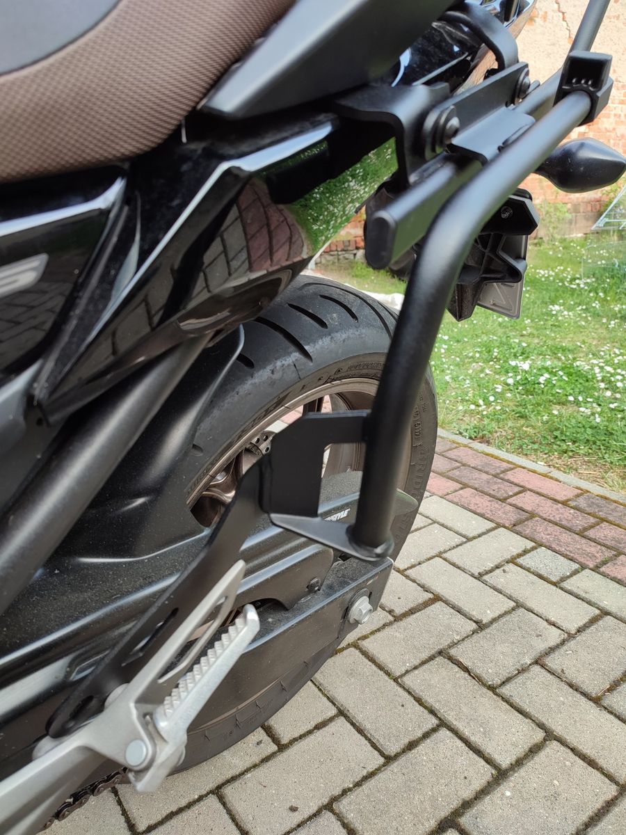 Die Halterung vom Seitenträger passt gerade so dazwischen - dann sind aber die Löcher nicht mehr übereinander. Ich werde das Gefühl nicht los, dass einer der beiden Träger falsch geliefert wurde. Leider steht nichts darauf. Aber rein von der Optik her scheint es doch so gedacht zu sein, dass Seitenträger und Topcaseträger zusammen montiert werden können... ich müsste mal ein Bild sehen, so beide angebaut sind...