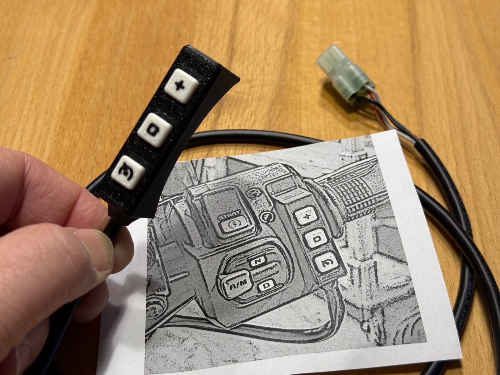 Ferner habe ich mir noch den alternativen 3er Schalter für das rechte Lenkerende bestellt - das ist erst angekommen, nachdem ich den Tempomat bereits ausgebaut hatte. Ist also unbenutzt. Ein gutes Bild, wie es aussieht, liefert dieser Beitrag unseres Forums.