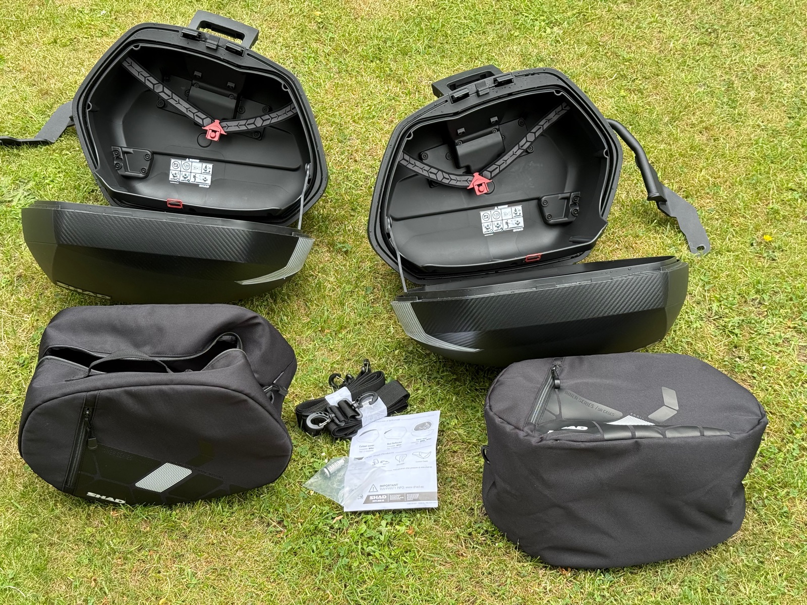 Habe die Koffer seinerzeit beim Kauf meiner NC aus 1. Hand mit bekommen. Sie wurden vom Händler angebaut, jedoch nie auf Touren genutzt. Die Wischspuren außen stammen vom Umlagern/Hantieren. Die Halter sind mit dabei, ebenso wie die Innentaschen - ebenso nie benutzt - sowie zwei Schlüssel und einem Ersatzschloß.