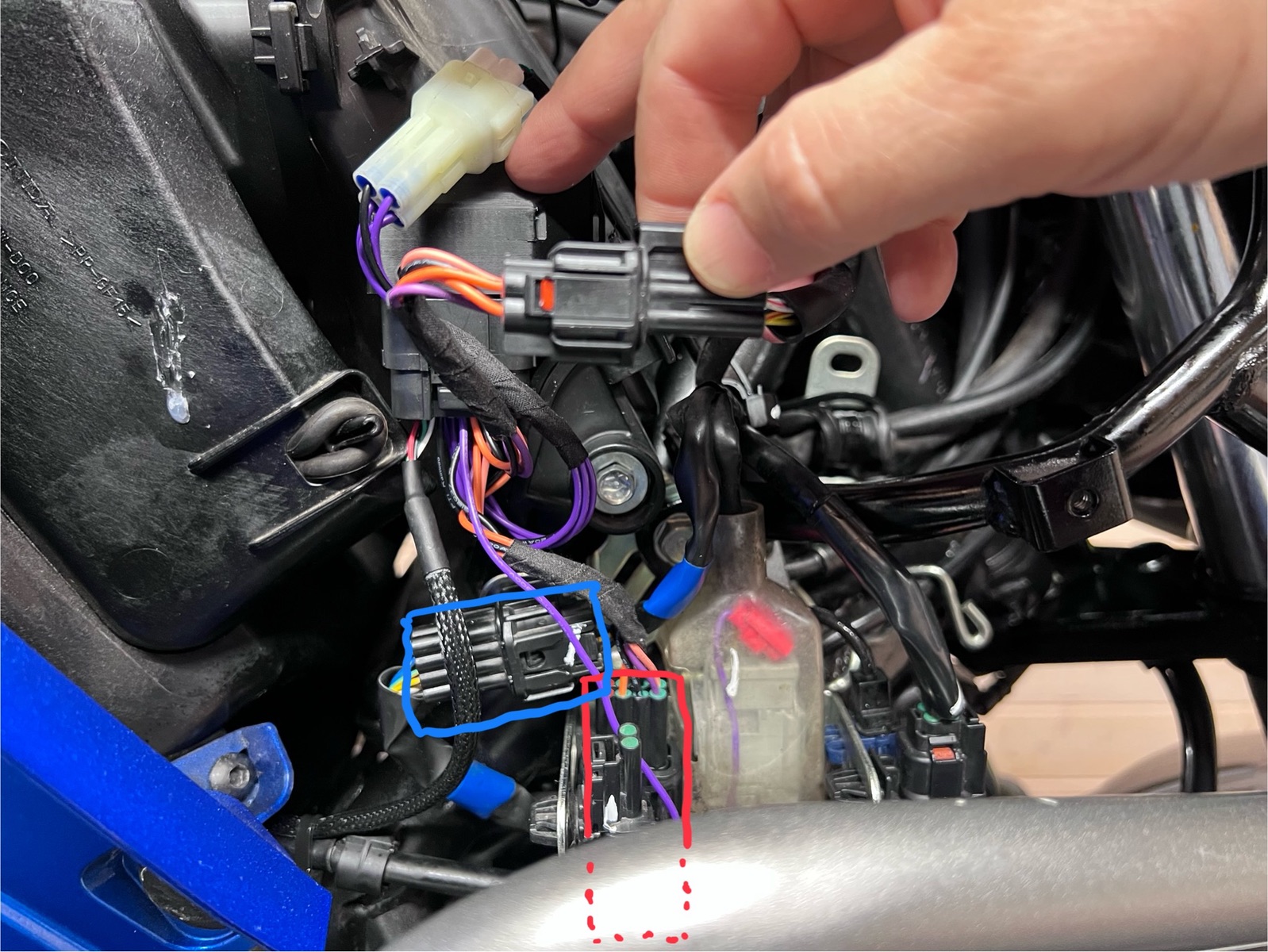 EDIT: Oben im Bild in der roten Markierung ist vor dem 8-Pin Stecker übrigens ein ungenutzter 2-pin Stecker. Der ist laut Veridian für die Honda-Griffheizung.