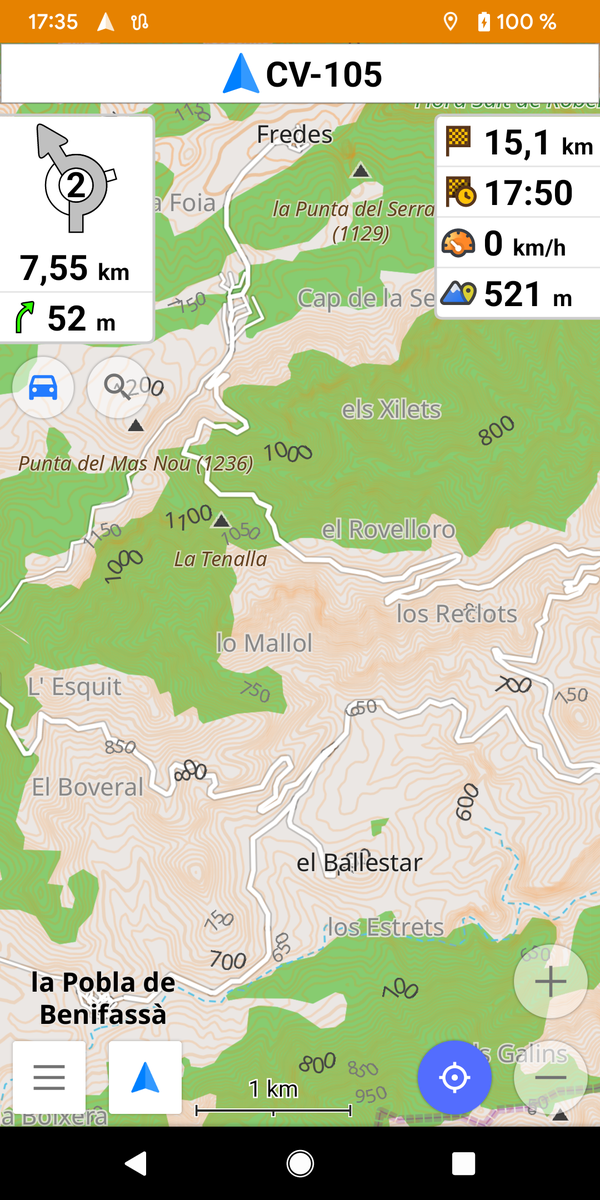 Katalonien – Wikipediade.m.wikipedia.orgHier navigieren wir mit Osmand und versuchen auf den gelbfarbenen Straßen zu bleiben. Die sind ideal.