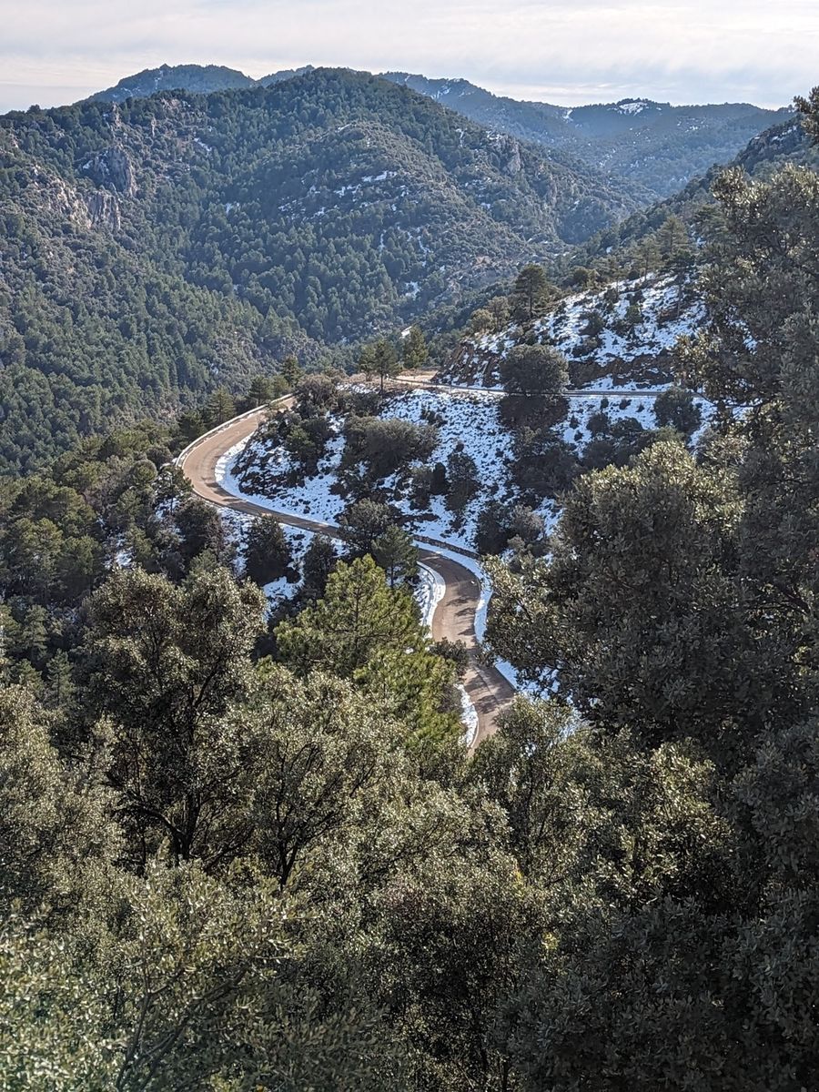 Wir bewegen uns zur Zeit hauptsächlich im katalonischen Vorküstengebirge das hat für unsere Zwecke zur Zeit viele Vorteile: Wenig Verkehr, nicht zu kalt, viele neue, gut ausgebaute Straßen und trara: Sehr viele Kurven.