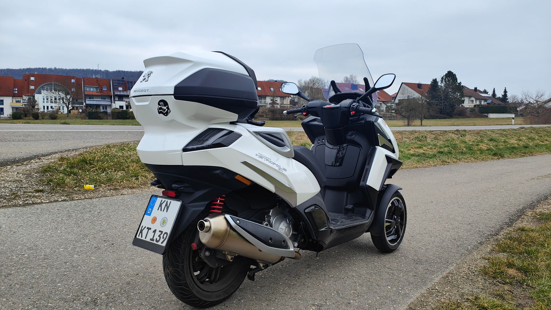 nach meinem schweren Unfall konnte ich mich nicht mehr auf mein rechtes Bein verlassen, es hatte immer wieder Aussetzer. Darum kaufte ich mir einen Peugeot Metropolis SW. 400 ccm und 35 PS waren ok. Die kleinen Räder sind zwar etwas lästig, hauptsächlich bei Schlaglöchern, und 280 kg Gewicht sind ne Hausnummer, aber Spaß hat das Teil gemacht und praktisch war es auch.