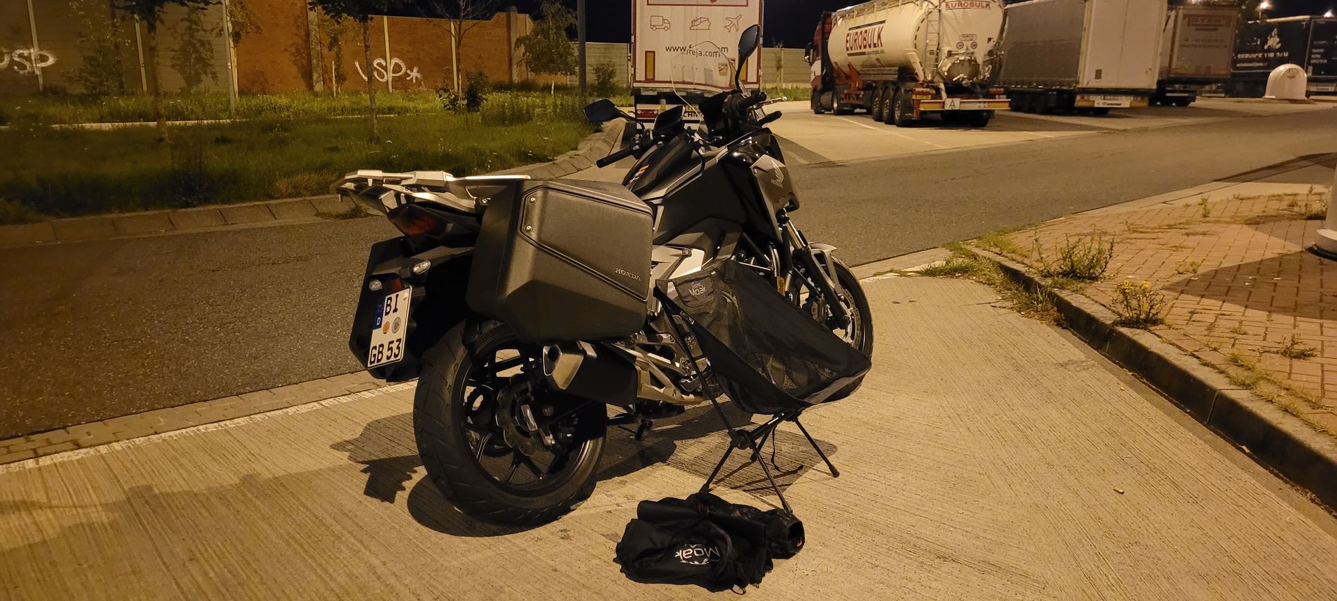 Meinen Kopf, im Helm, (es war kalt) hab ich einfach an die Sitzbank gelehnt und bin eingeschlafen. Der Motor wärmte mich schön am Rücken.