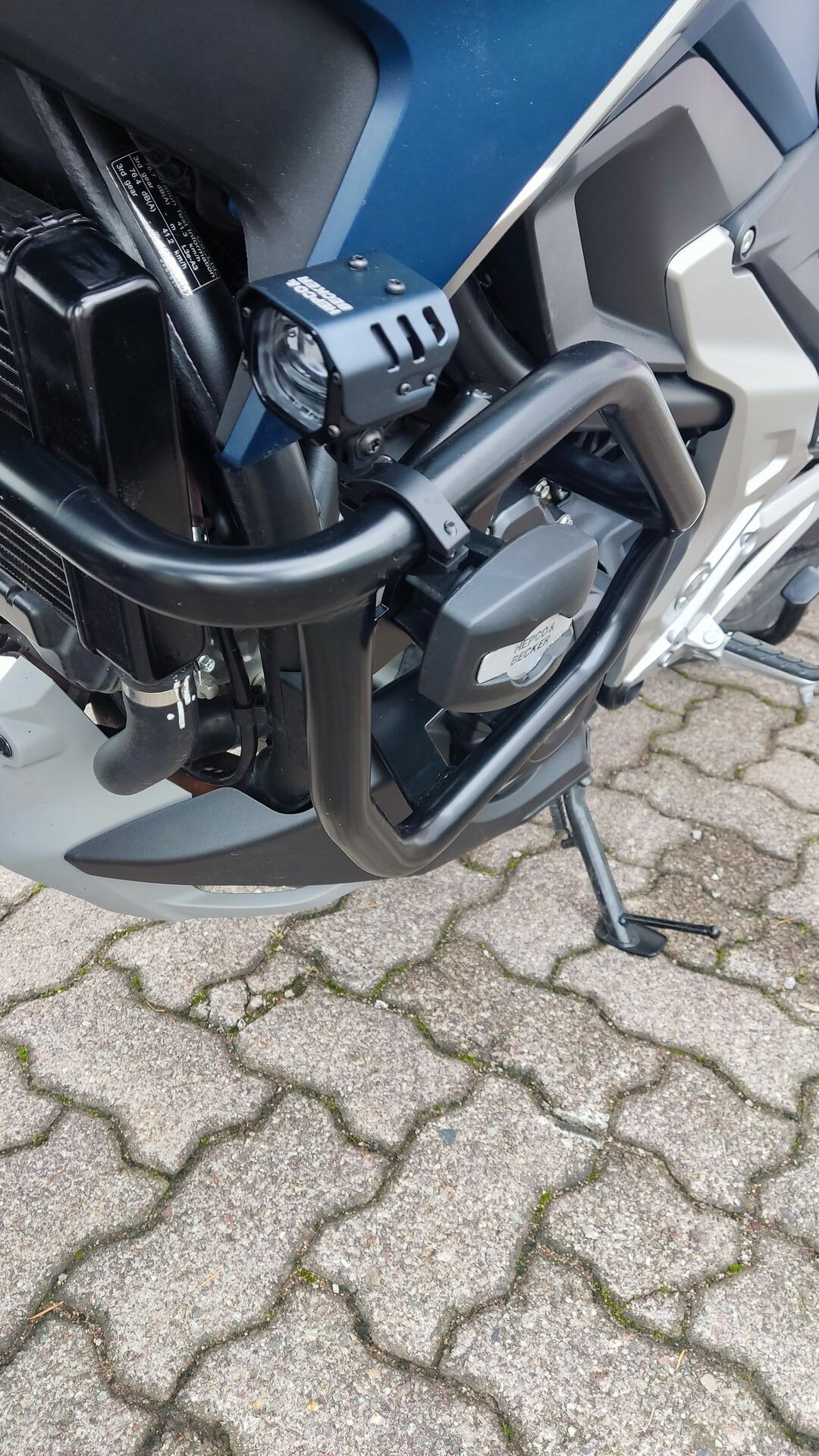 Am Montag wurden die Scheinwerfer und gestern die Stürzbügel (ebenfalls von Hepco & Becker) geliefert. Da ich sehr, sehr ungeduldig bin, wollte ich gestern Abend angefangen um zumindest einen Teil zu montieren. Zunächst mussten die Stürzbügel montiert werden, vielleicht schaffe ich das noch an dem Abend. Ich war viel schneller als gedacht, nach 20 Minuten waren die Bügel montiert.