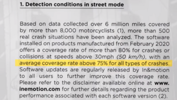 Der Screenshot ist aus einem Video von F9 aus den techn. Daten. Die elektronischen Airbags von In&Motion funktionieren danach mit einer Zuverlässigkeit von durchschnittlich 75%, das erst ab einer Geschwindigkeit größer 25 km/h, sofern der Aufprall von vorne kommt und ein GPS-Signal vorhanden ist. Die Daten sind von 2020, mittlerweile ist das sicher besser geworden. Die Mindestgeschwindigkeit von 25 km/h steht aber auch heute noch bei In&Motion. Also kein Unfall bauen im Tunnel, in der Stadt bei langsamer Fahrt oder von hinten oder der Seite angefahren werden. Die Software wurde halt hauptsächlich mit Crashs trainiert, die dort stattfanden, wo Crashs halt zuverlässig stattfinden - auf der Rennstrecke. Da spielen langsame Geschwindigkeiten keine Rolle