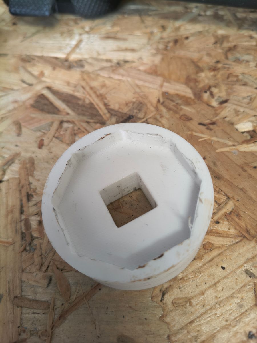 Ich habe das tatsächlich mal ausprobiert, allerdings wollte ich eine Nuss haben mit 1/2"-Zoll-Antrieb. Das hat so mittelprächtig funktioniert - also nicht. Es scheiterte an der Oberflächenfestigkeit. Trotz maximalem Füllgrad ist der Kunststoff zu weich, die Ecken des Kopfes des Stopfens drücken sich ins Material und weiten die Nuss. Leider lange bevor man das notwendige Drehmoment erreicht... Meine Lösung war ein Metallring am unteren Ende und etwas Kunstharz, die alles zusammenhalten. Sieht nicht schön aus, hat aber funktioniert. Die Metallverstärkung am Antrieb braucht es nicht. Die Flächen am Vierkant sind groß genug, dass die Flächenpressung klein bleibt.