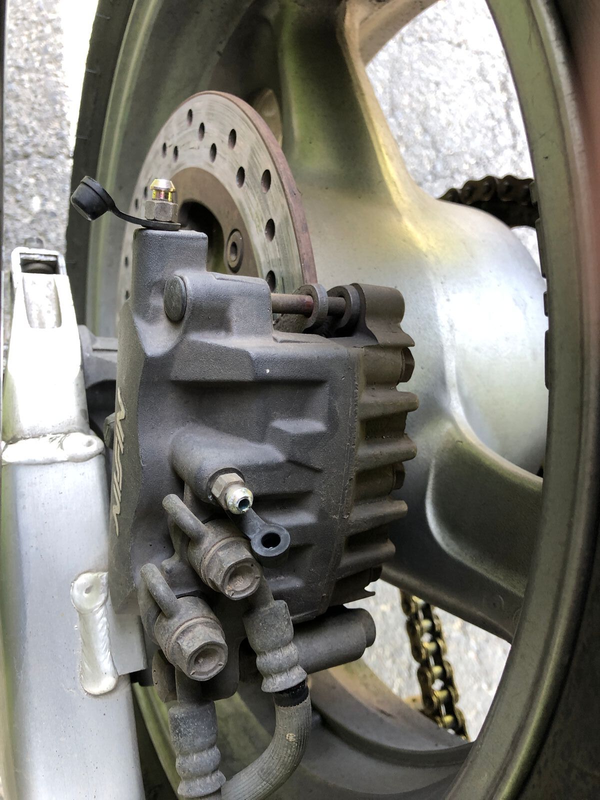"ich denke der Bremsflüssigkeitswechsel ist auch mal wieder fällig", dachte ich mir und lies mir einen Termin bei meinem HH geben. Nach dem Bremsflüssigkeitswechsel war ich stolz der XX was gutes getan zu haben. Auf dem Heimweg nach dem Warmfahren ging ich auf die Autobahn. Mal kurz um die 200 km/h gefahren und nächste Ausfahrt runter. Da merkte ich das der Vortrieb nicht mehr wie gewohnt vorhanden war. Ich fuhr noch ca. 1 KM und beim Anhalten bremste die XX aus Tempo 30 ohne Berührung der Bremse recht flott auf null runter. Das Bike lies sich danach nicht mehr schieben. Keinen Millimeter. Ein ordentlicher Gestank kam vom Hinterrad. Es rauchte nicht schlecht. Ich konnte mir das nicht erklären. Als ich näher hinging um genauer zu schauen, ploppten plötzlich beide Gummistopfen des Entlüftungsventils durch die Hitze mit Kraft herunter. So laut das ich erschrocken bin. Ich rief sofort beim Händler an. Dieser schickte mir recht zeitnah einen Mechaniker mit Anhänger der das Moped in die Werkstatt brachte. Für mich war klar: Fehler der Werkstatt beim Bremsflüssigkeitswechsel. Der Chef und sein Motorrad-Werkstattleiter sagten das sie es anschauen werden und mich dann anrufen. Erst wollte ich das Motorrad mit dem Anhänger abholen und selbst reparieren, weil ich sauer war. Der Chef redete sehr ruhig mit mir und ich gab mein Vorhaben auf es selbst zu reparieren.