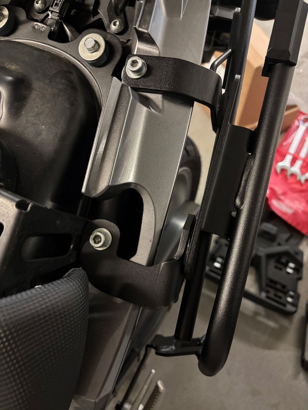 Wenn ich die Topcasehalterung abmontiere und die beigelegten Halter für die Seitenkofferträger montiere, passt es, aber ich will ja beides. Zudem berührt die Schraube dann auch die Verkleidung. Klar hier könnte ich mit einer weiteren Unterlegscheibe arbeiten, aber auch hier bin ich mir unsicher ab das so muss...
