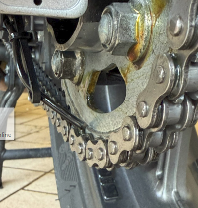 Nachdem ich das Ritzel gereinigt hatte stand das Motorrad über Nacht in der Garage. In der Zeit ist kein weiteres Öl ausgetreten.