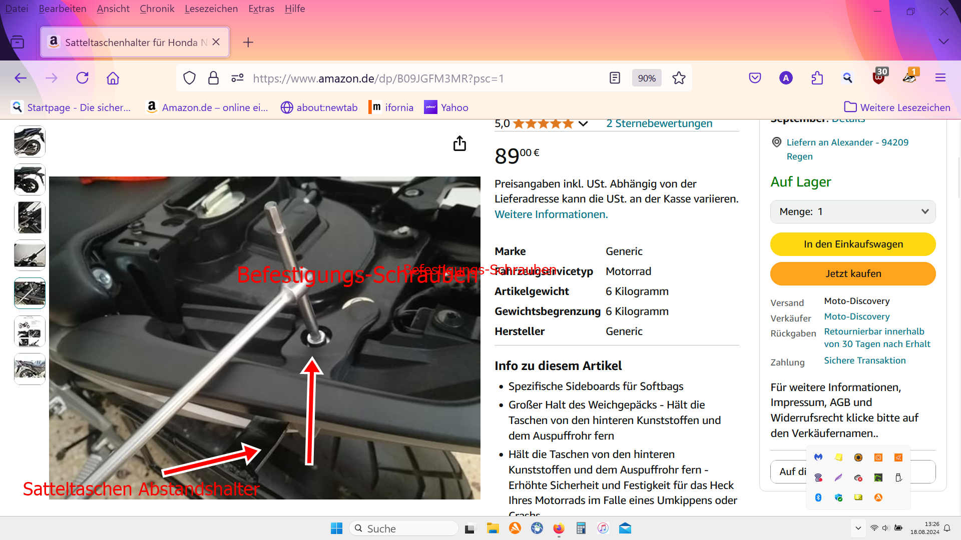 Hallo! `Habe einen Satteltaschen-Abstandshalter bereits unter der Beifahrer-Sitzbank festgeschraubt und will nun darüber eine Gepäckbrücke festmachen. Geht das vom Platz her (hat viell. schon jemand machen müssen?) Fotos dazu im Anhang! Danke!