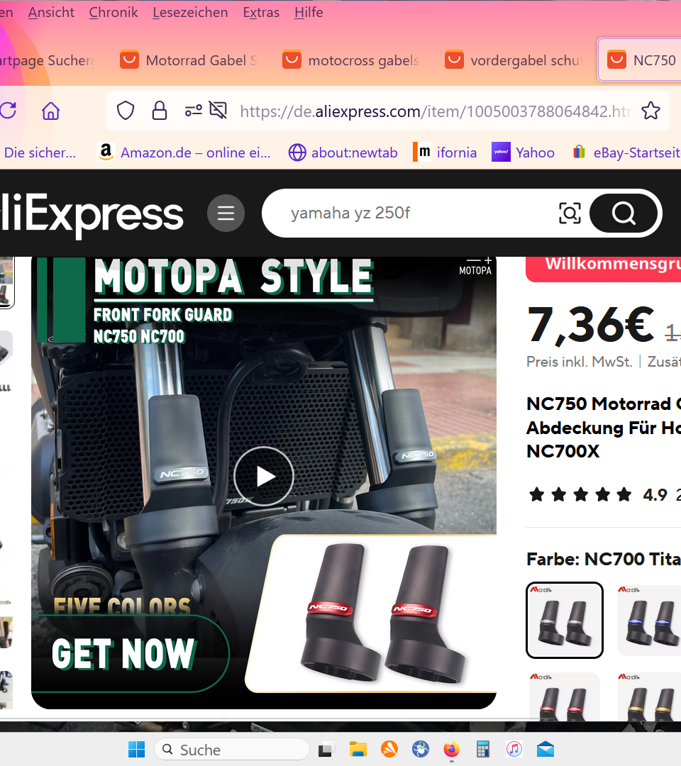 Schön werde ich mal austestenHabe gestern die billigen Gabelschützer von "ALIBABA" bekommen (Foto). Wirken erstmal stabil, aber Finger weg davon, da sie beim starken Einlenken mit Einfedern der Gabel an die Sturzbügel anstoßen (Sturzgefahr), auch ähnliche Gabelschützer erst testen, oder besser beim Hersteller anfragen! Ich habe meine entsorgt (billiges China-Geraffel).