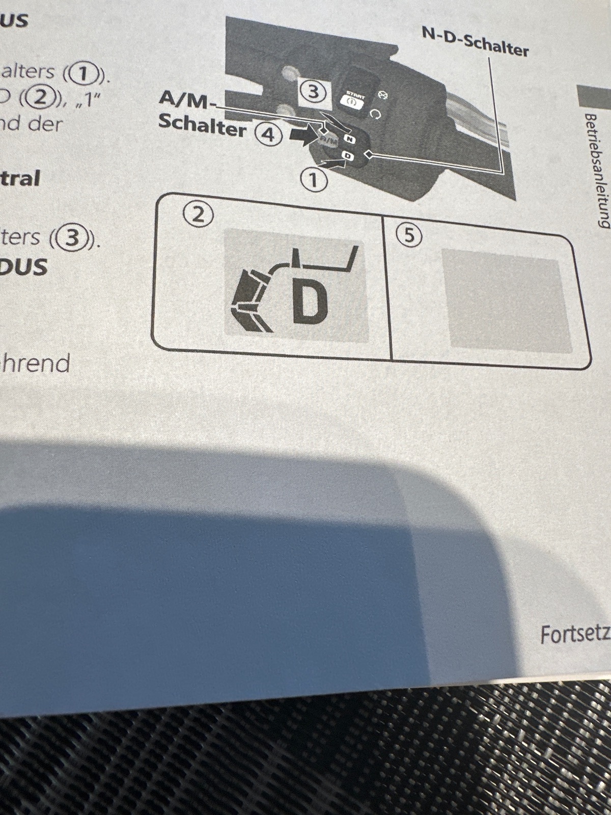 Starten, Warten, D einlegen, dann A/M Schalter betätigen.