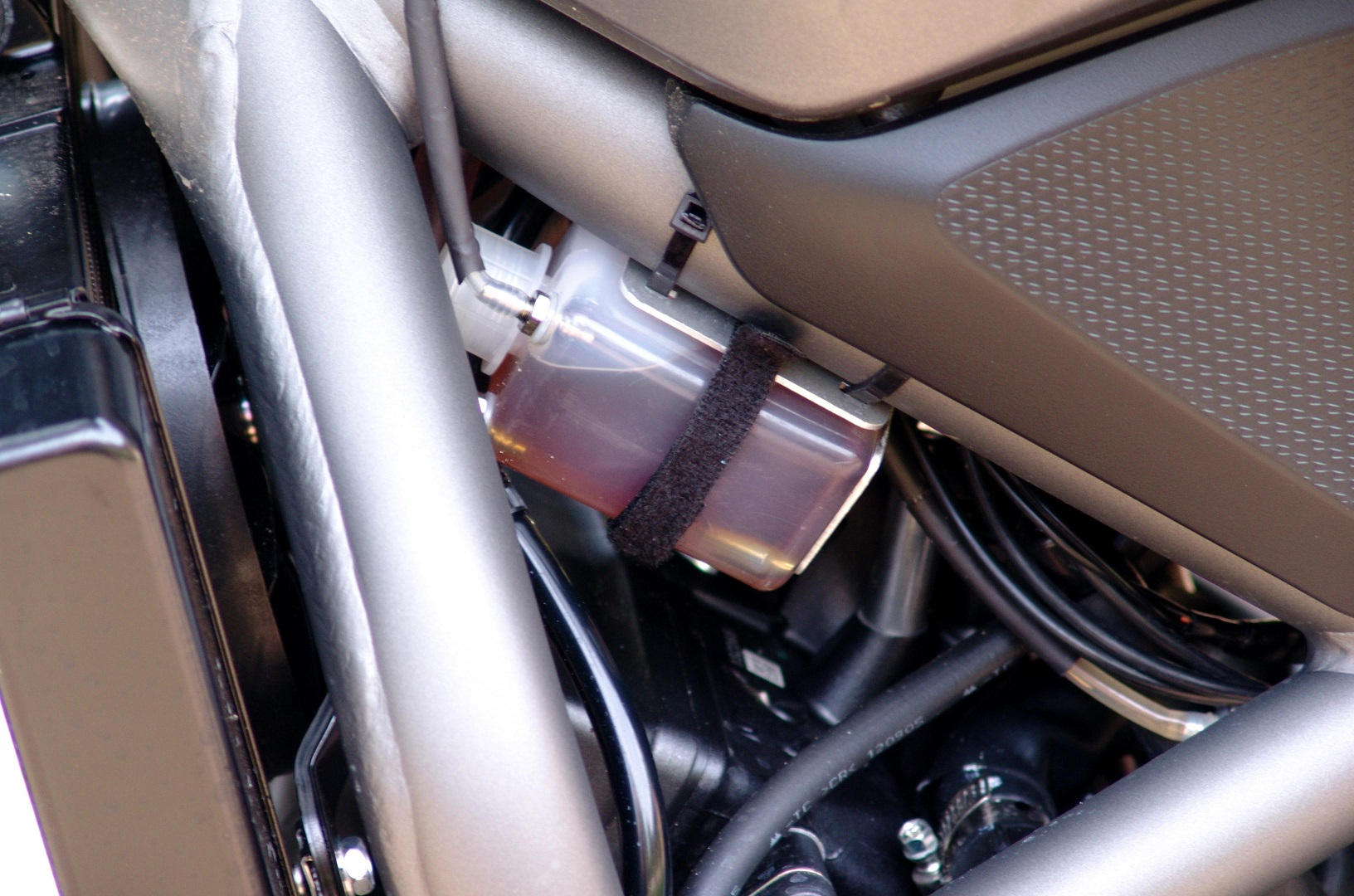 ja, ja der Belüftungsschlauch ist lang und liegt spritzwassergeschützt, aber wir reden hier ja auch von der S siehe Bild. Die X wie auf den Bildern zu sehen ist, ist ja obenherum etwas fülliger als die S. Aber eins Sage ich Dir, die Clipse der Kunststoffverkleidung brechen sehr schnell ab und außerdem kann man eine schnelle Kontrolle des Ölstandes und der Behälterdichtigkeit schon mal vergessen.