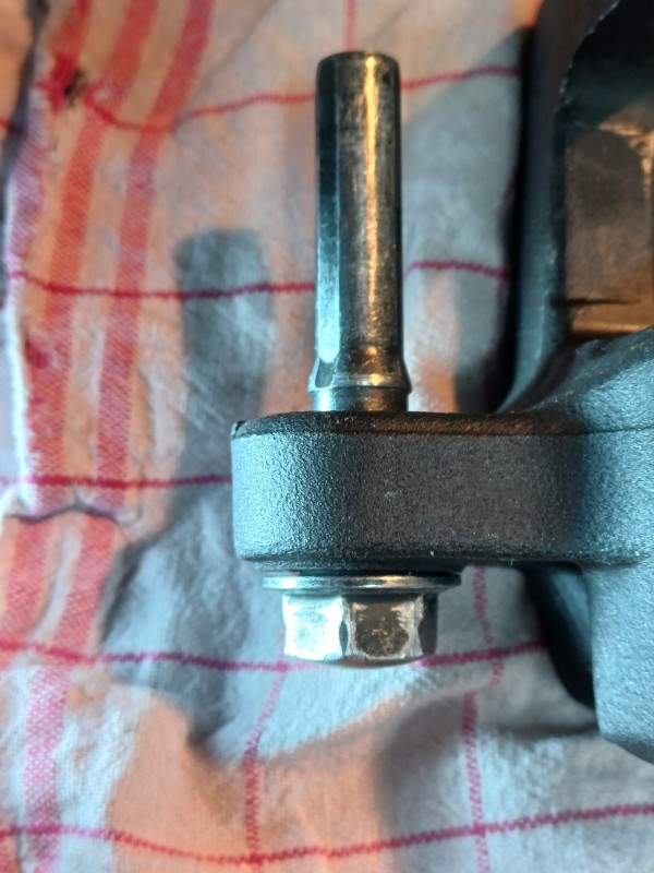 Wie man hoffentlich sieht, ist der Schraubenkopf nicht bündig auf dem Sattel drauf, es bleibt ein minimaler spitzwinkliger Spalt. Der Abstand von der Schraubenspitze zum Sattelkörper beträgt 16 millimeter.