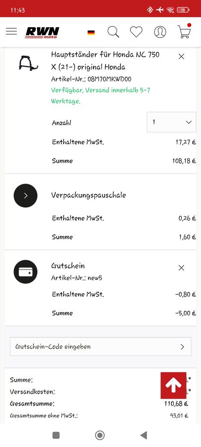 Hauptständer für Honda NC 750 X (21-) original HondaDu bist auf der Suche nach einem zuverlässigen und stabilen Hauptständer für Deine Honda NC 750 X? Dann haben wir genau das Richtige für Dich! Dieser…www.rwn-moto.deAlternativ gibt es denn für 112€ plus 15€ Versand da aus Österreich auch dort👇