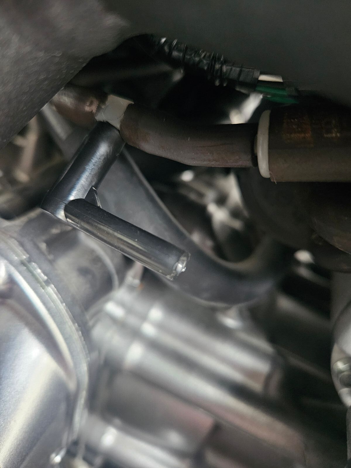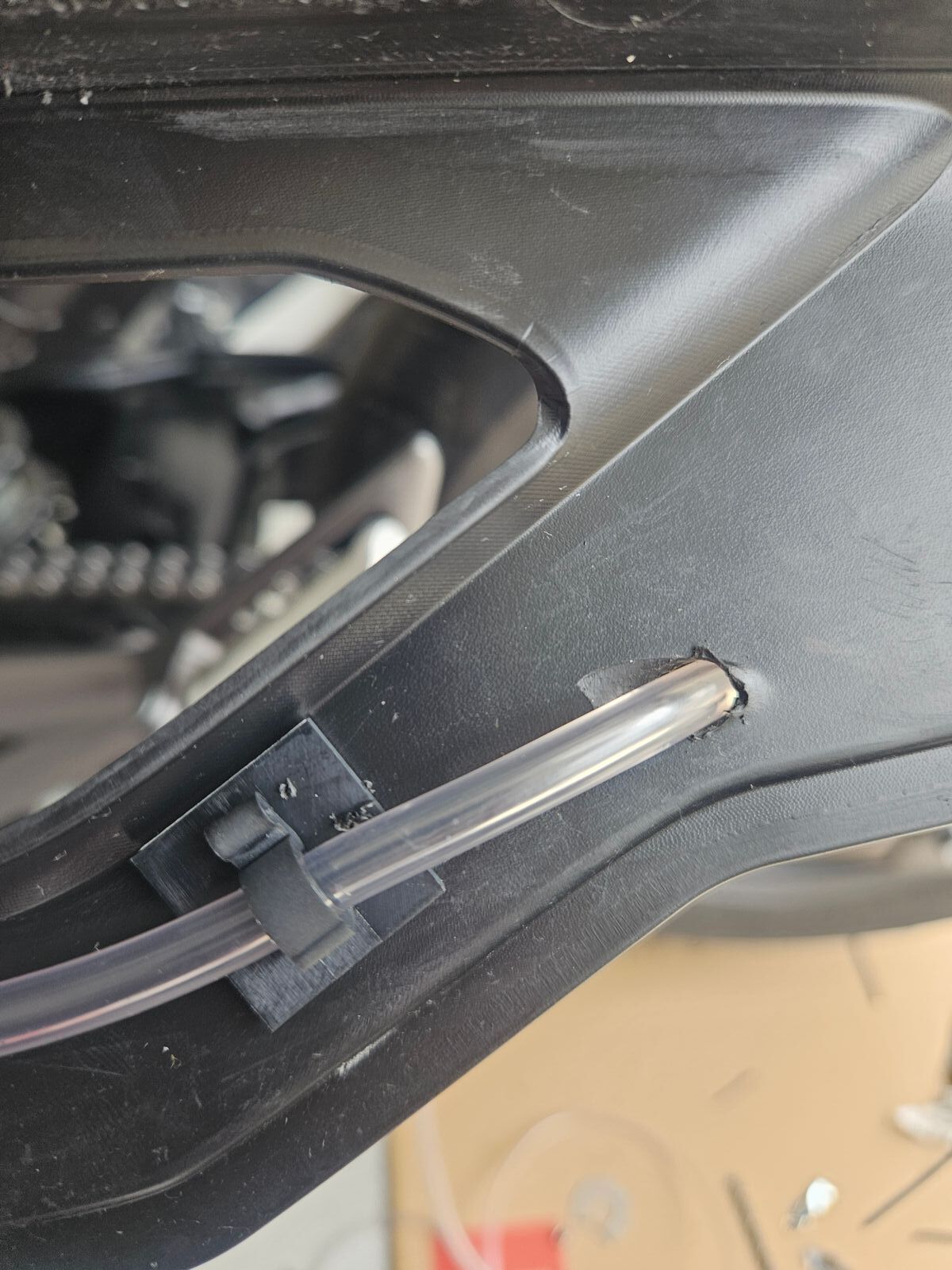 Unterdruckschlauch unter der Verkleidung verlegen, bis zum "Öltank".