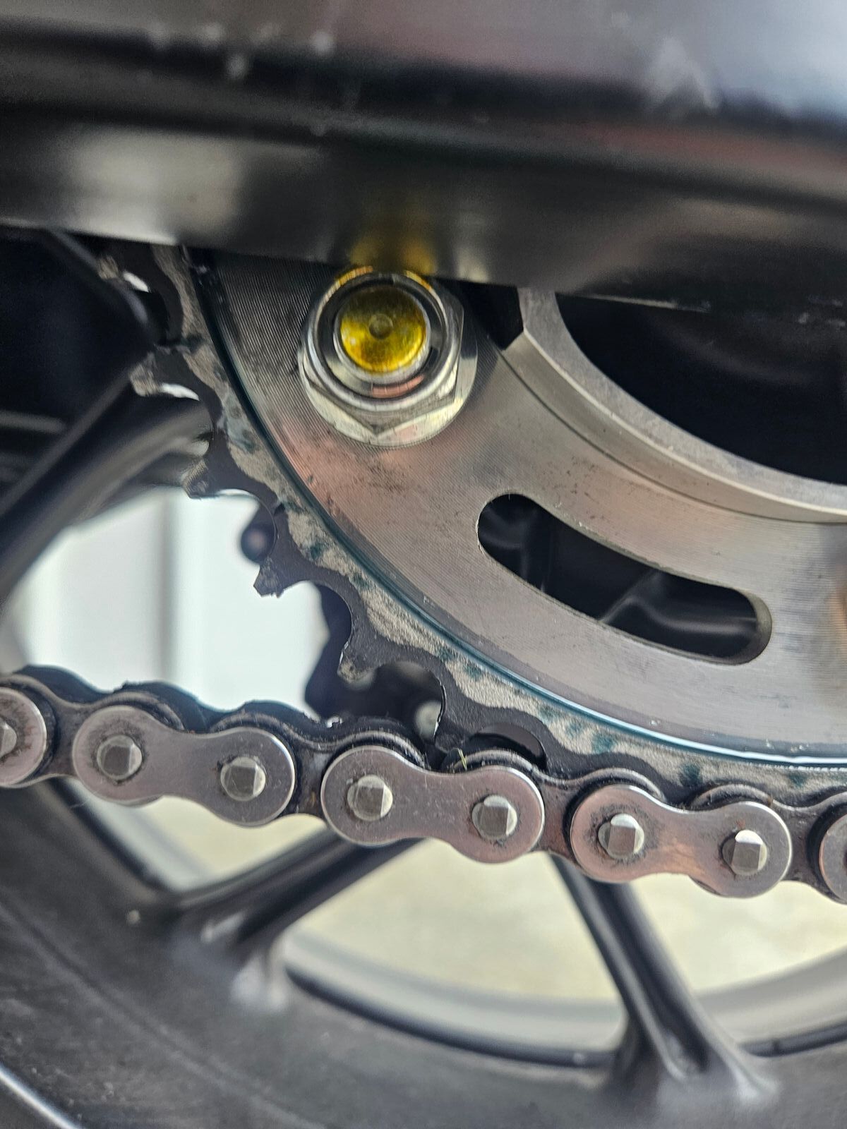 Also das Ganze am Kettenschutz nach Innen verlegt und den Außlass zum Kettenrad gebracht.