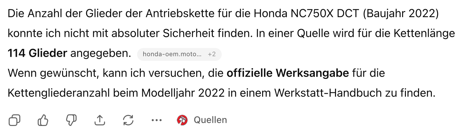 Leider liegt mir nur ein WHB der Vorgängerversion (bis 2020) vor. In dem steht das die DCT-Maschine nur 112Glieder hat im Gegensatz zu Schalter 114Glieder.