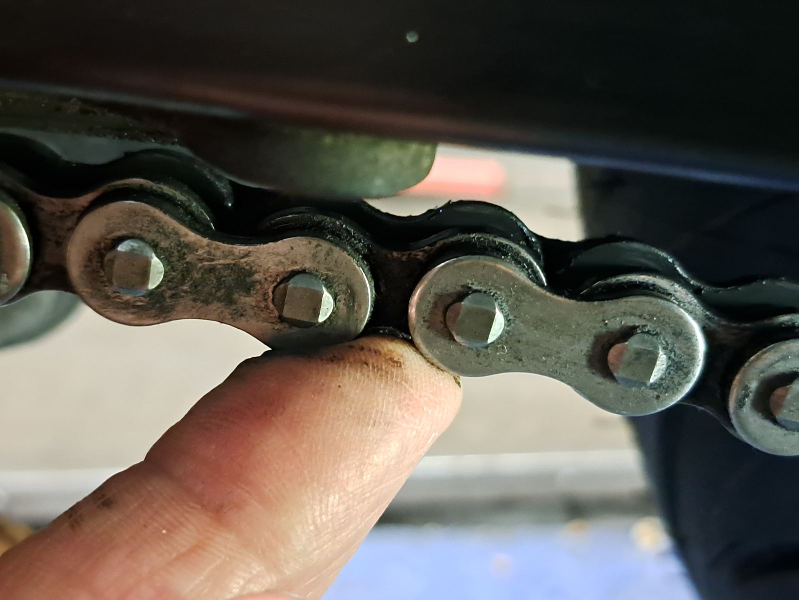 Bei der Begutachtung der Kette ist mir aufgefallen, das der Kettenspanner ziemlich weit hinten steht.