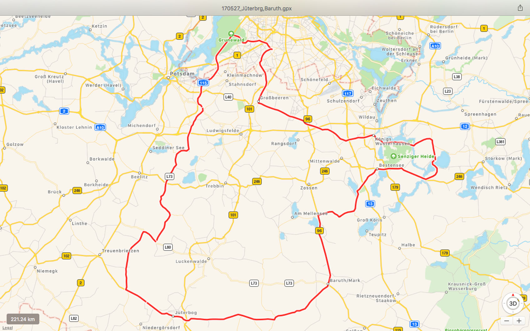 Hier mal ein Bild von unserer heutigenTour, bei dem 115 Autobahnschild ging es los entgegen des Uhrzeigersinn, es waren bei mir 222 km.
